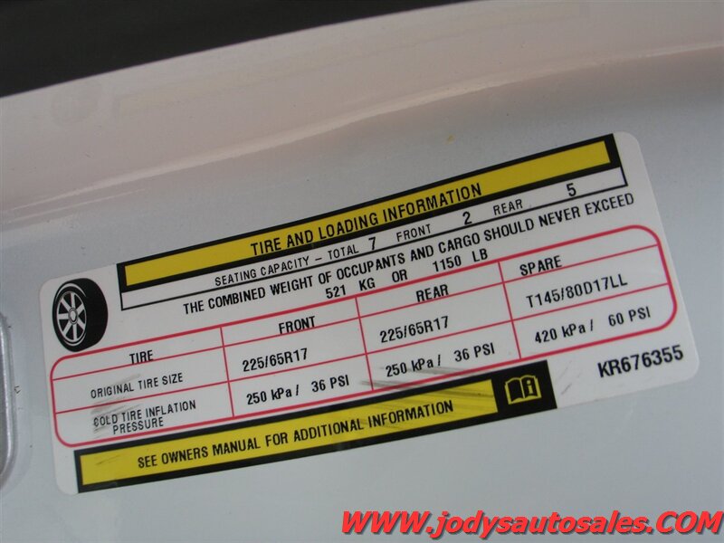 - Safety & driver aids: Rearview backup camera for safer reversing and parking; multiple airbags including front and side-curtain airbags; anti-lock brakes (ABS); electronic stability control and traction control; tire pressure monitoring system (TPMS); LATCH anchors for child seats.